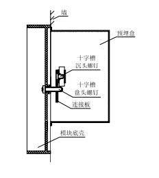 ☆ 小模塊通用底座LD60(X)包裝袋內(nèi)有一塊金屬連接板,如圖4-1所示將其安裝在預(yù)埋盒固定孔上。