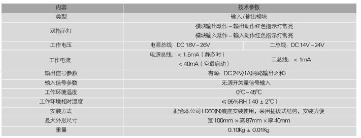 三、利達LD6800EC-2輸入輸出模塊主要技術指標