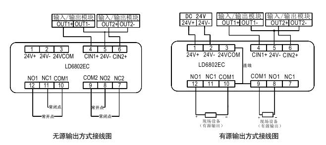 (4)本輸出模塊單源輸出情況下,需要DC24V,有極性。